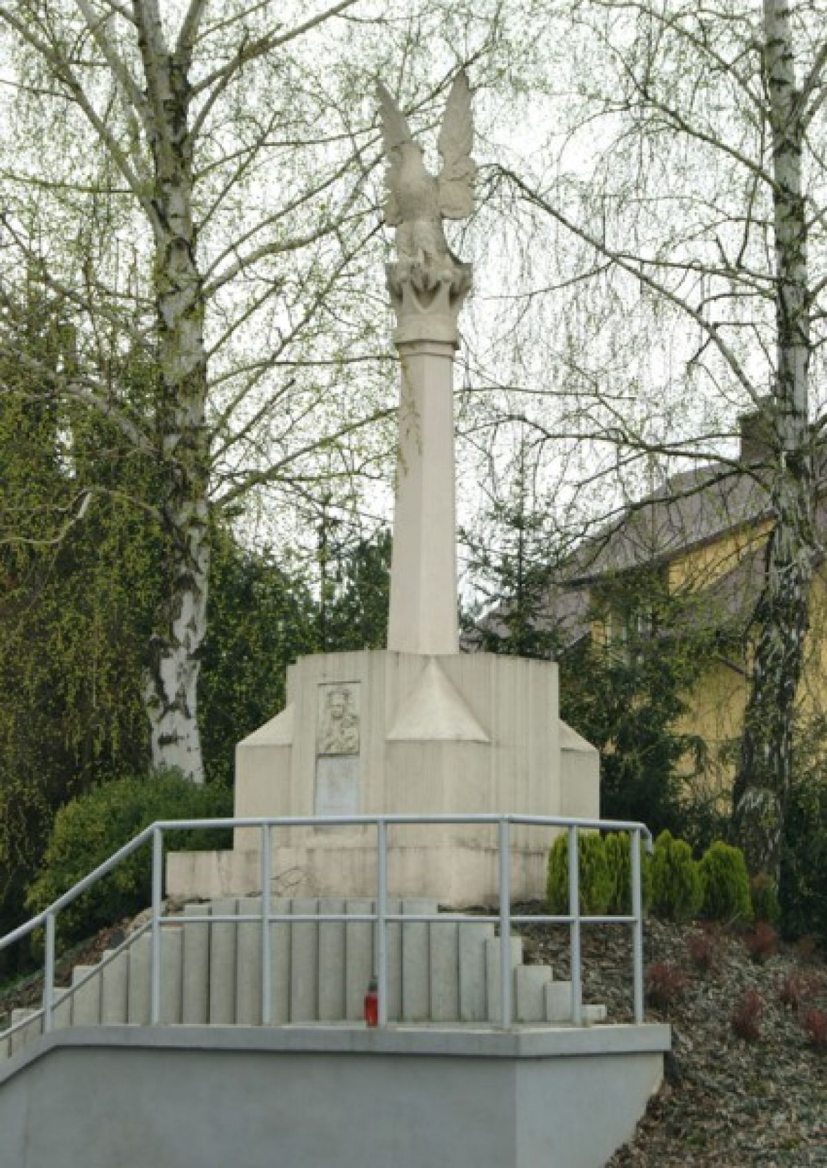 Na ziemnym kopcu został umieszczony cokół z kolumną zwieńczoną koroną, na której przysiadł orzeł. Pomnik został wykonany wg projektu inżyniera Klaudiusza Angermana z Boguchwały, natomiast rzeźbę orła wykonał rzeszowski warsztat Janika.