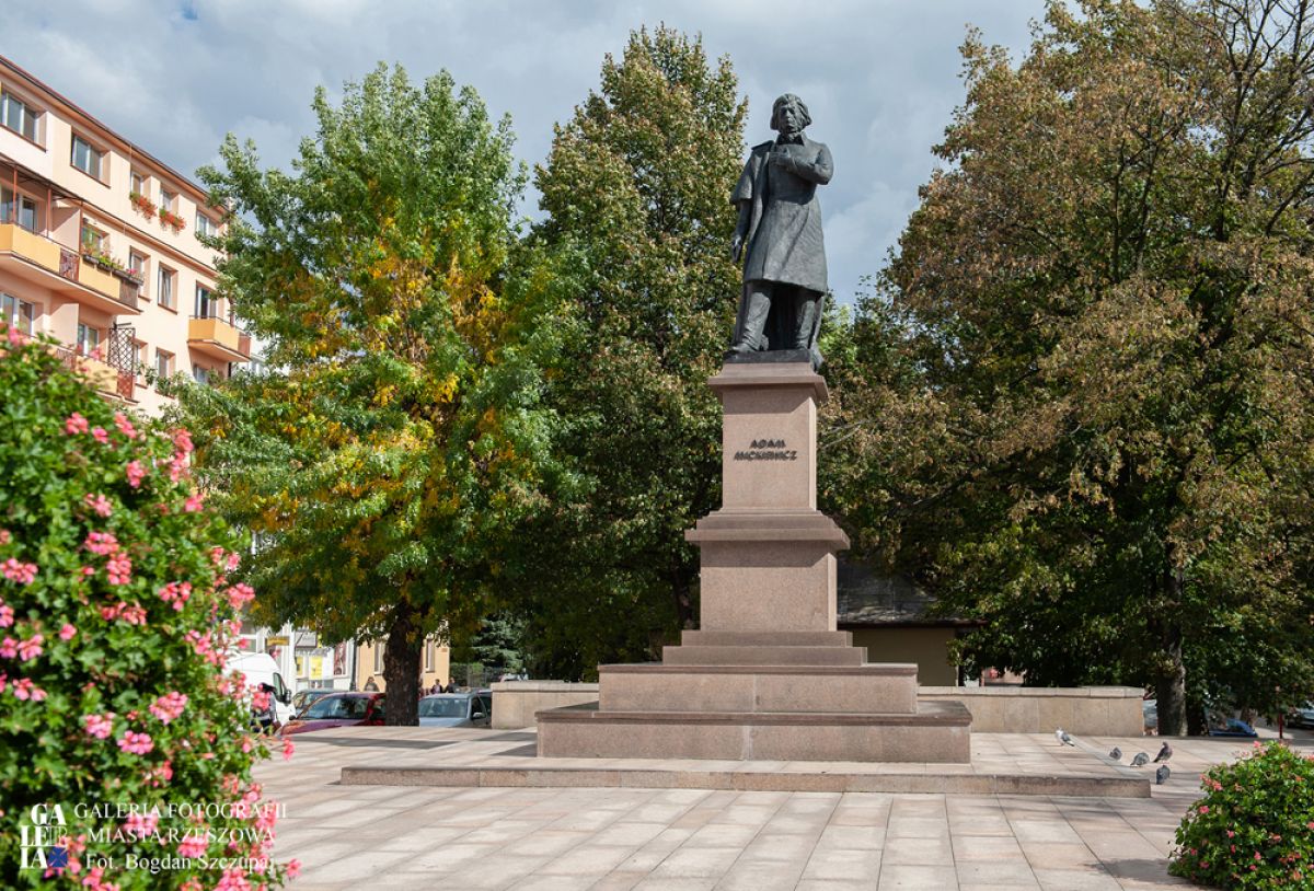 Obecny pomnik Adama Mickiewicza został postawiony w 1986 r. staraniem Komitetu Obywatelskiego przy Prezydencie Miasta Rzeszowa i jest autorstwa artysty rzeźbiarza Krzysztofa Brzuzana.