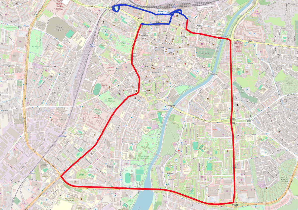 – al. Piłsudskiego – Targowa – Szopena – Kilara – Hetmańska – Powst. Warszawy – Podwisłocze - Kopisto –