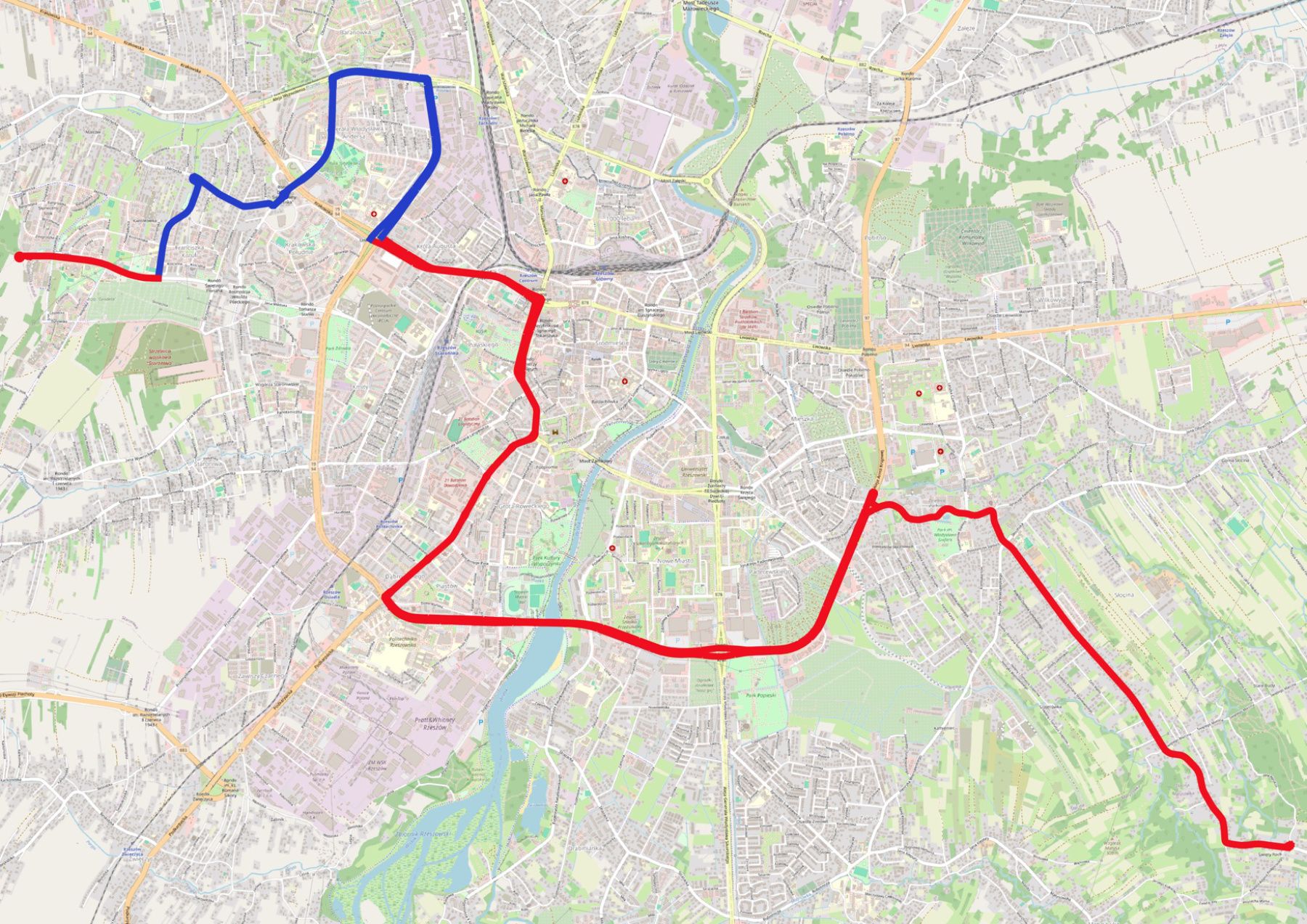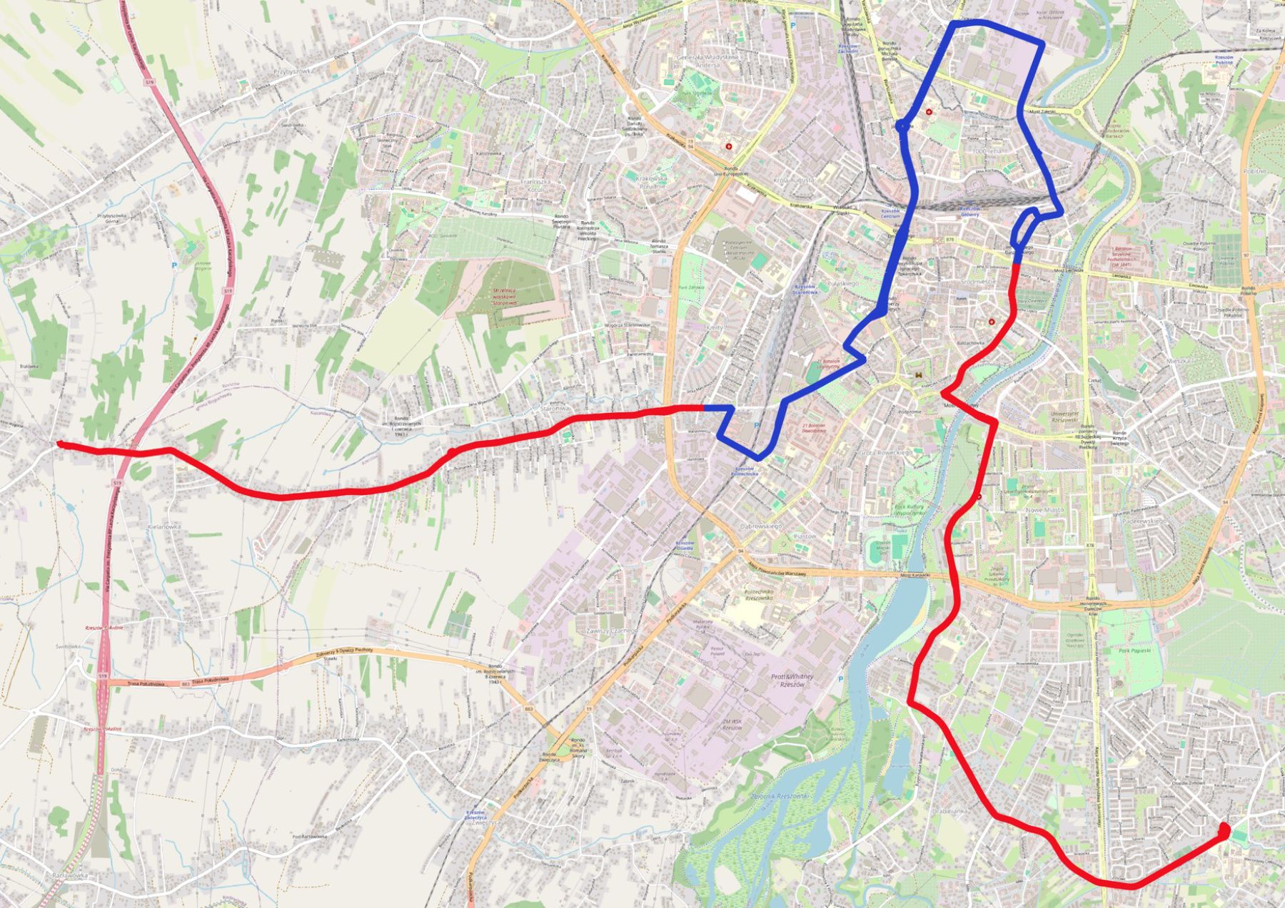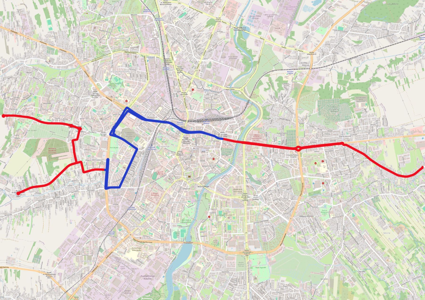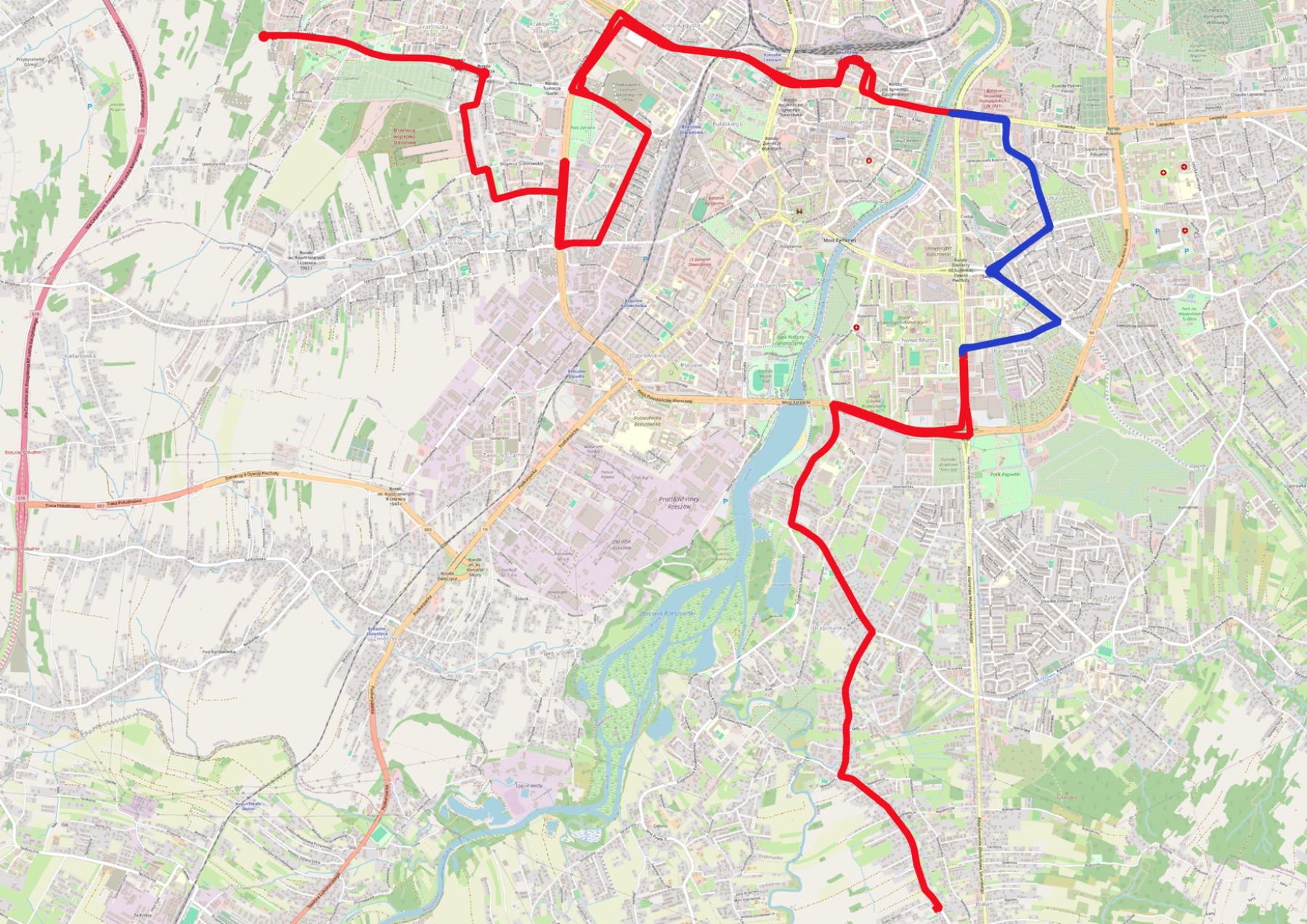 Uzasadnienie: Uwzględnienie w przebiegu linii ulic m. in. Hetmańskiej, Podwisłocze, Niemierskiego.
