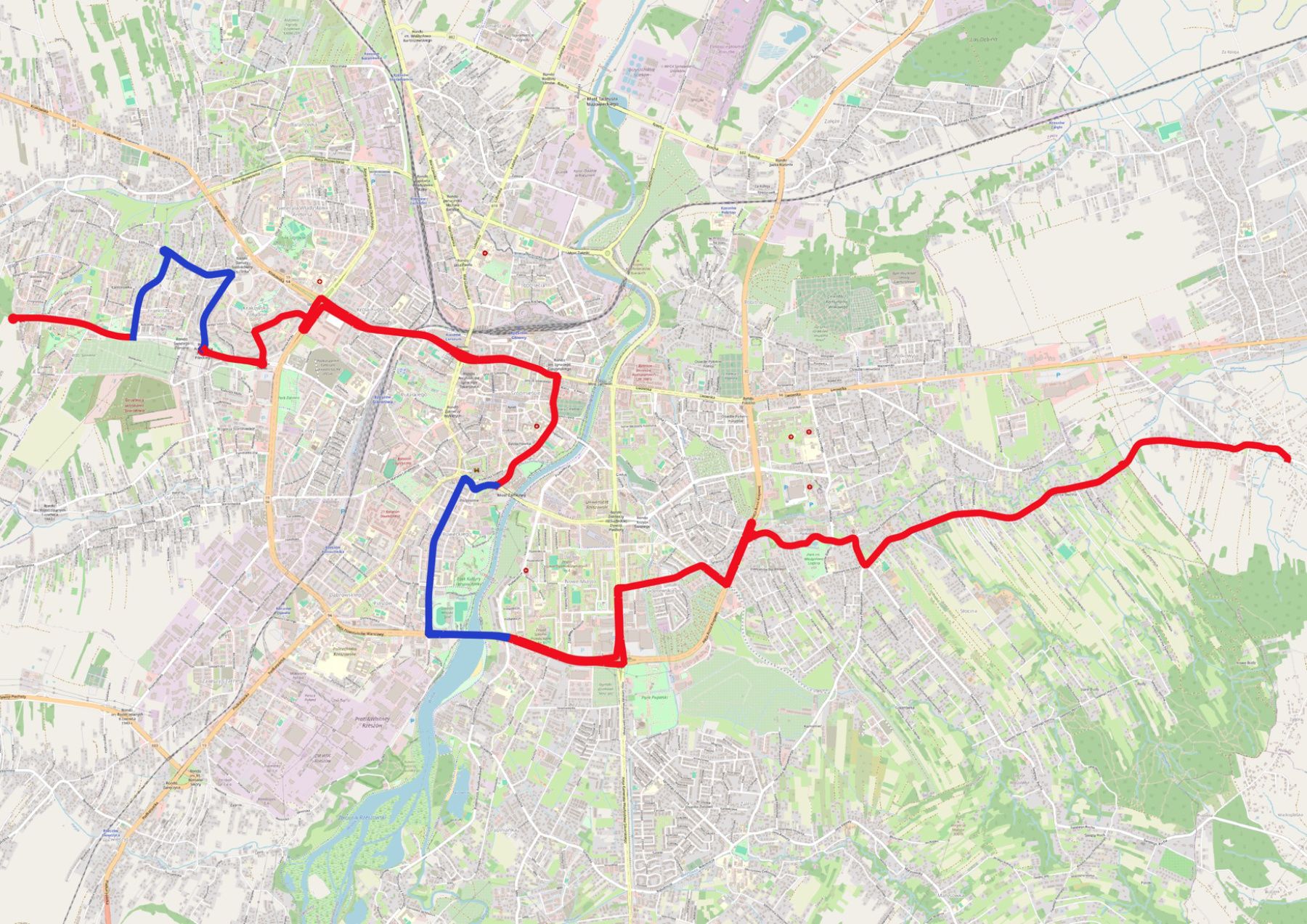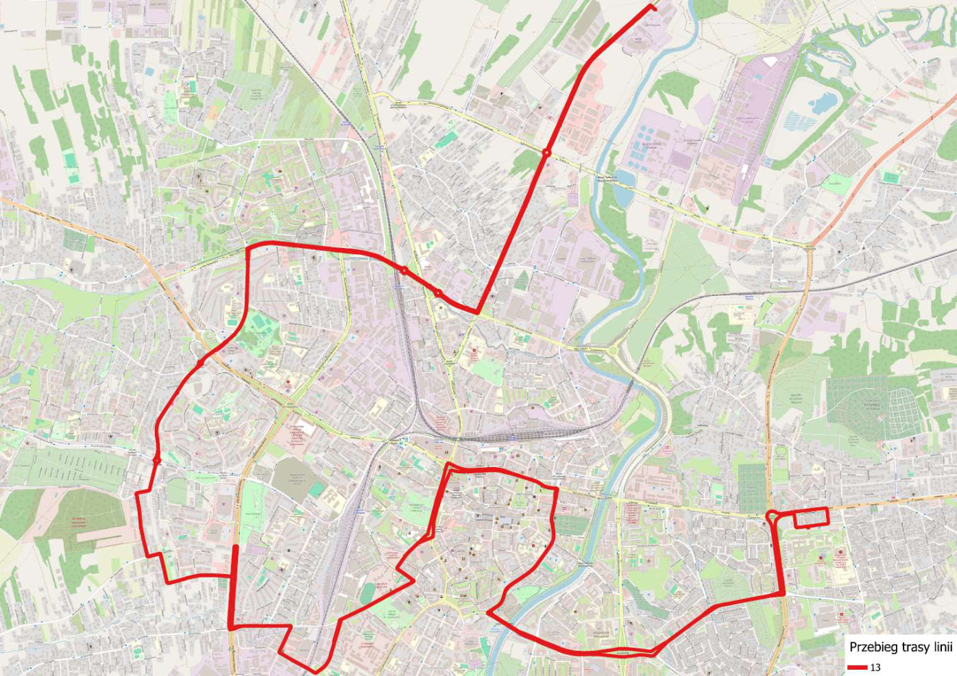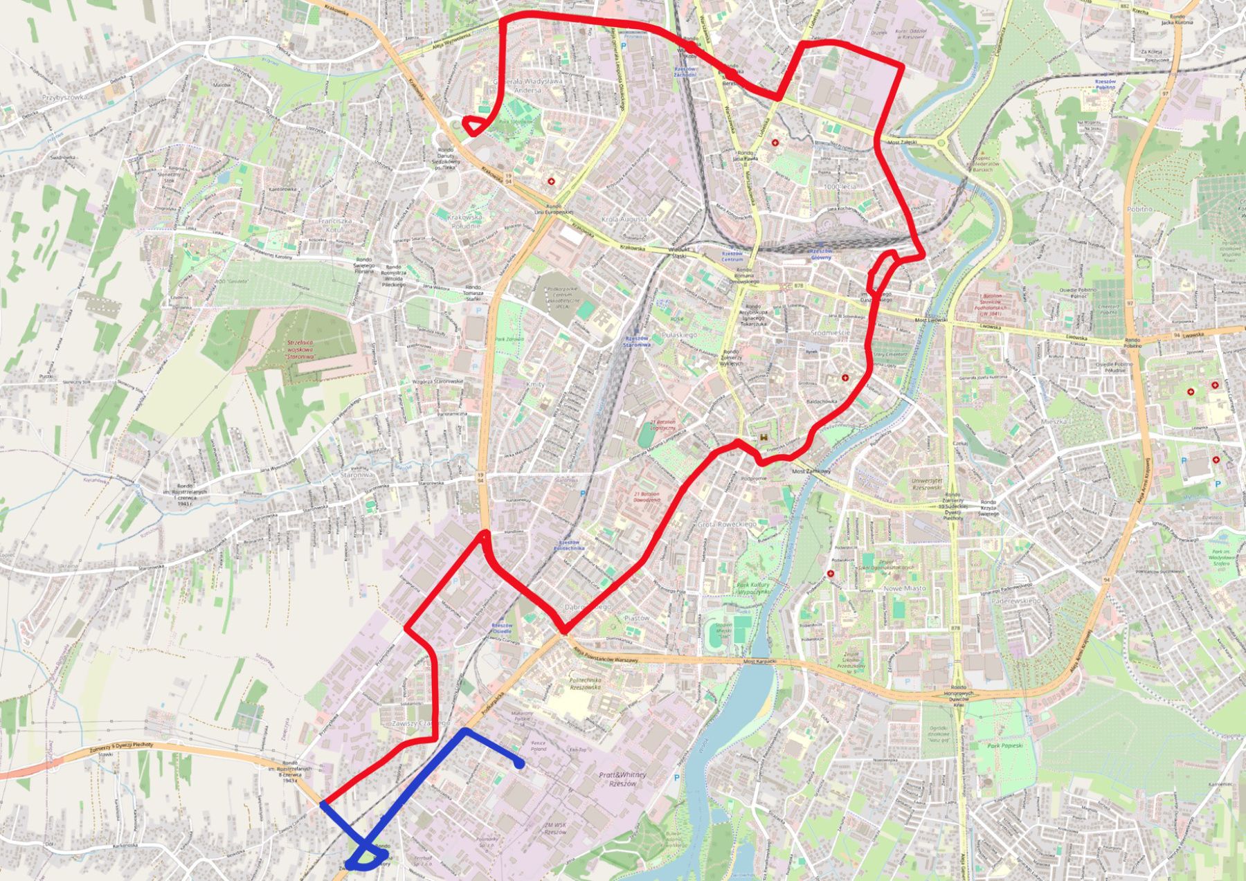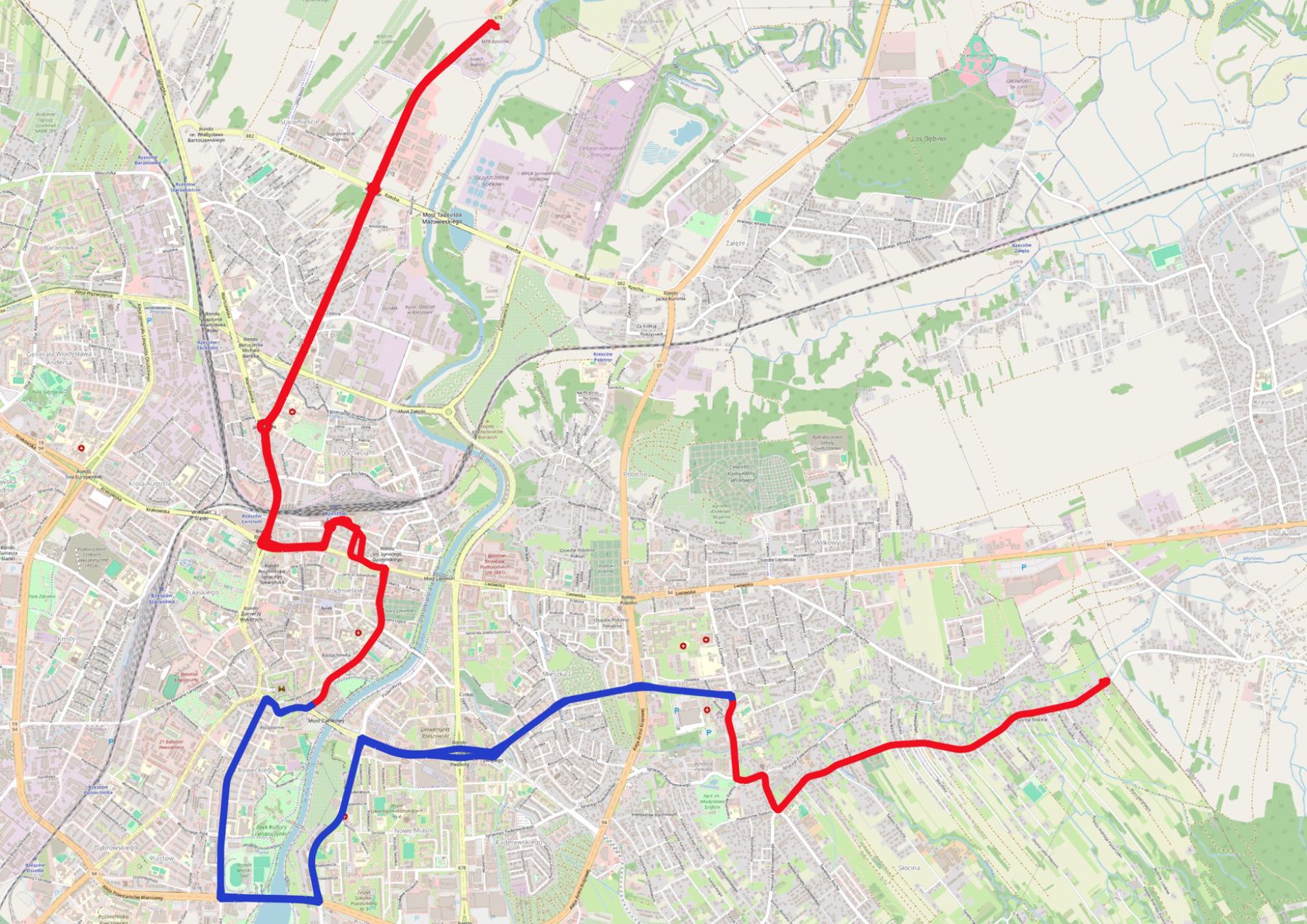 Uzasadnienie: Uwzględnienie w przebiegu linii ulic m. in. Hetmańskiej, Podwisłocze, Niemierskiego.
