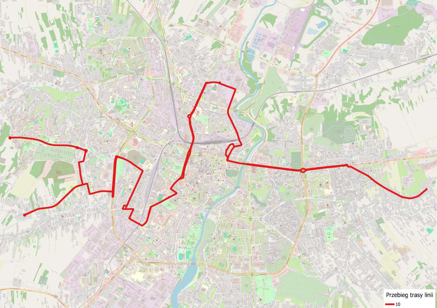 Piłsudskiego – Targowa – Szopena – Podwisłocze – Kwiatkowskiego – Strażacka – Robotnicza – ŁUKASIEWICZA PĘTLALinia 10