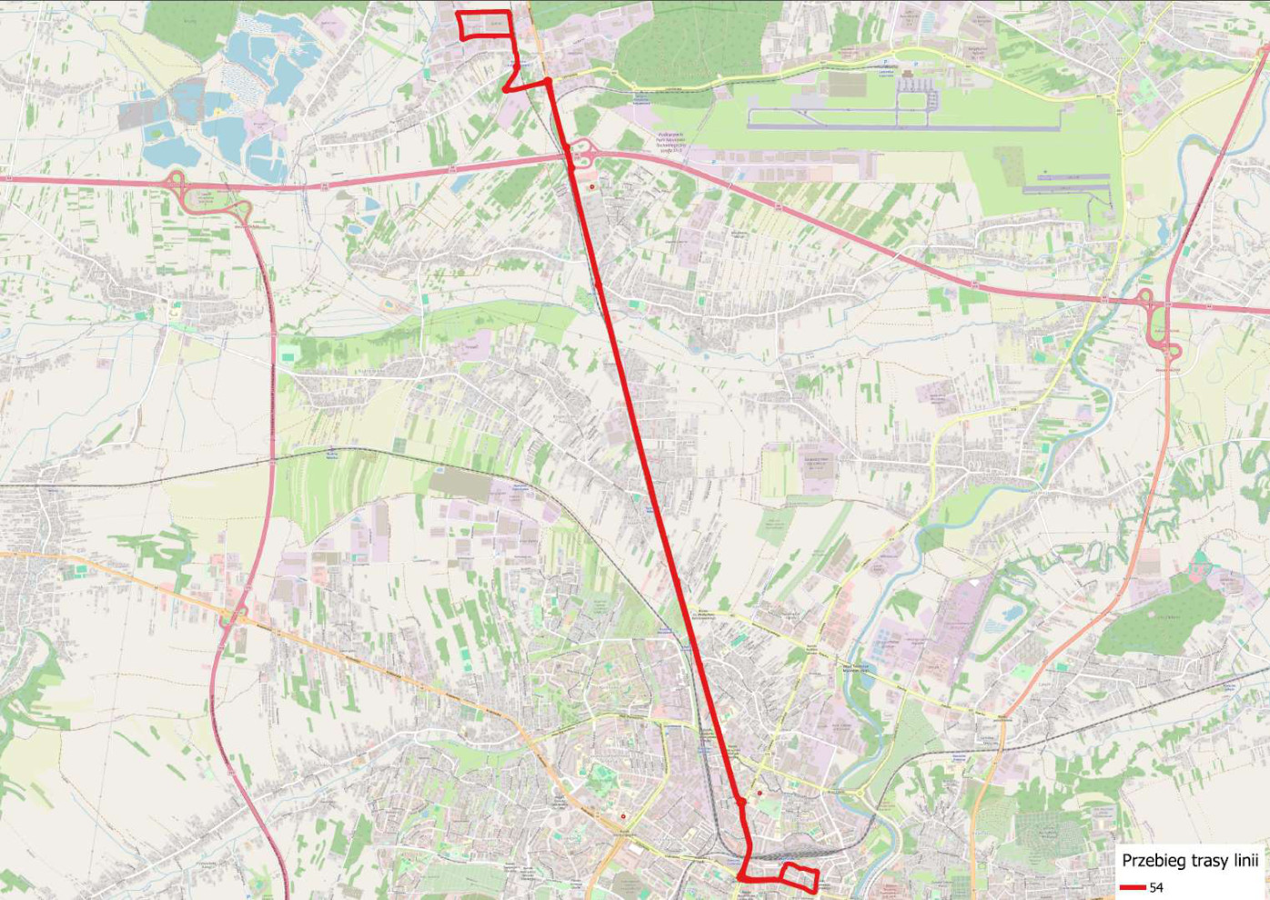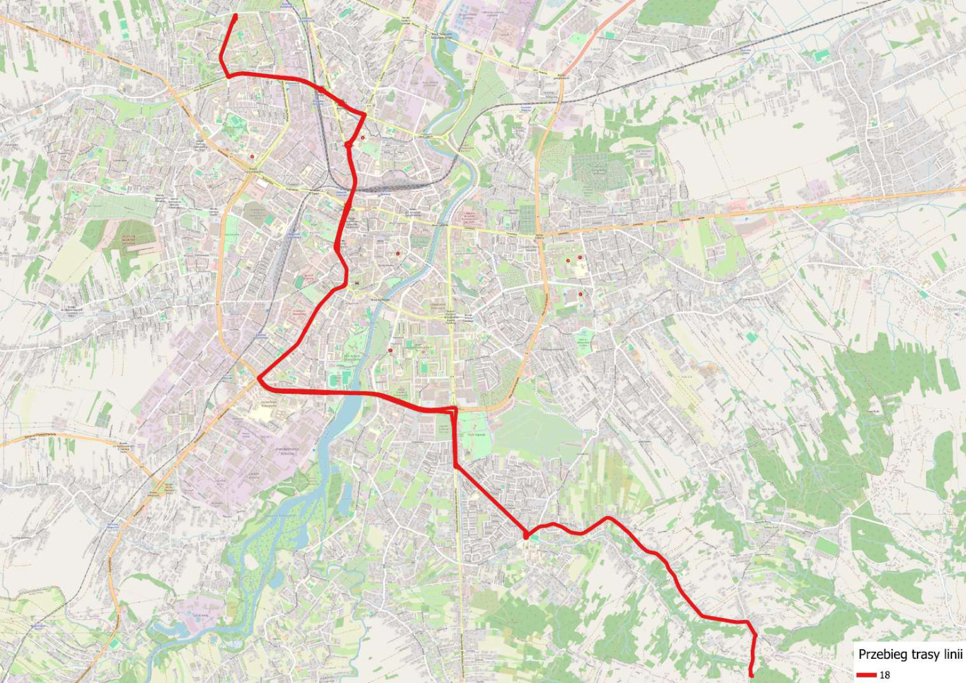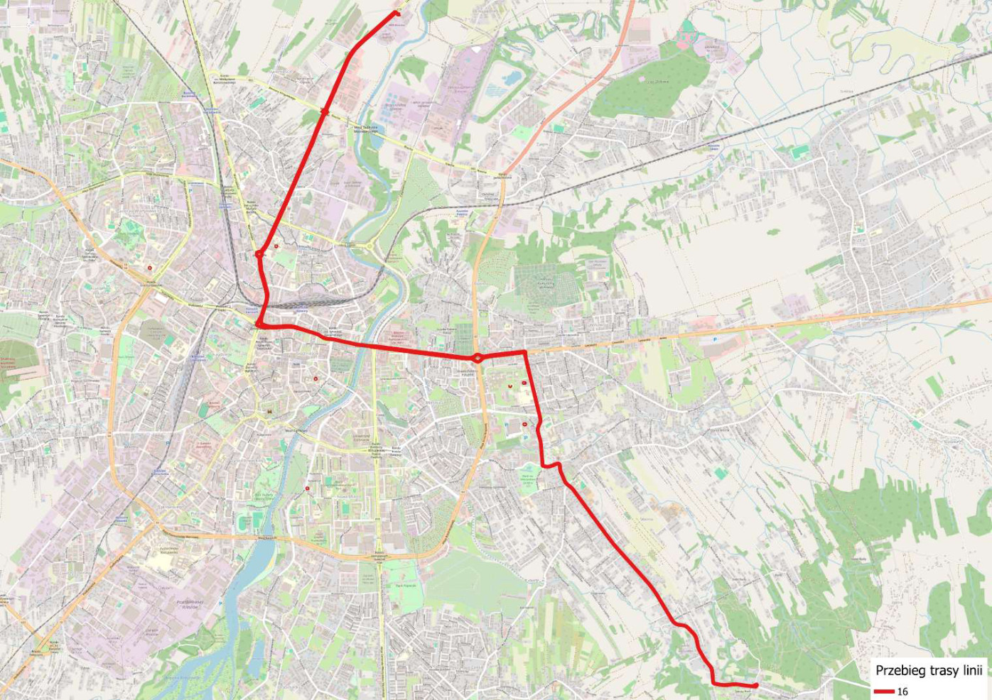 – Siemieńskiego – Ciepłownicza – (wybrane kursy: Ciepłownicza MPGK) – Rzecha – Załęska – Księżycowa – Stączka – Potockiego – POTOCKIEGO PĘTLA KARDYNAŁA K. WOJTYŁY PĘTLA – Wojtyły – Miła - Wojtyły – Strażacka – Urocza – Nowowiejska – Powst. Warszawy – Dąbrowskiego – Podkarpacka – Matuszczaka – MATUSZCZAKA PĘTLA LUBELSKA ZAJEZDNIA MPK – Lubelska – Marszałkowska – al. Cieplińskiego – Mochnackiego – Hoffmanowej – Langiewicza – Boya-Żeleńskiego – Hanasiewicza - Chmaja – Langiewicza –