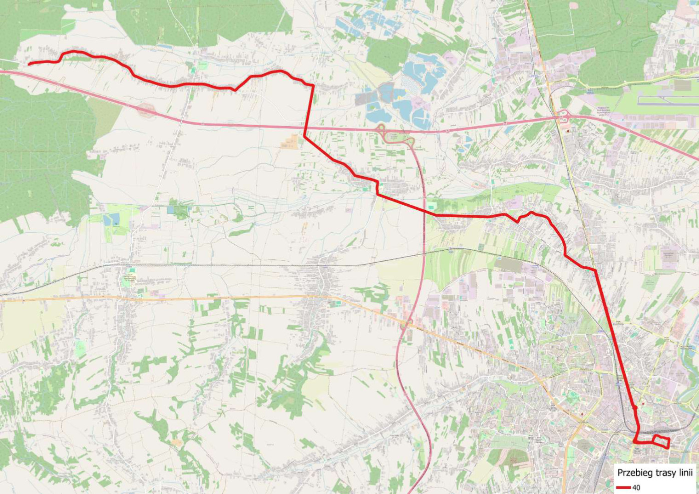 Dąbrowskiego – al. Powstańców Warszawy – al. Sikorskiego – Łukasiewicza – ŁUKASIEWICZA PĘTLA (wybrane kursy: Wieniawskiego – Kiepury – Matysowska – Pienińska – PIENIŃSKA