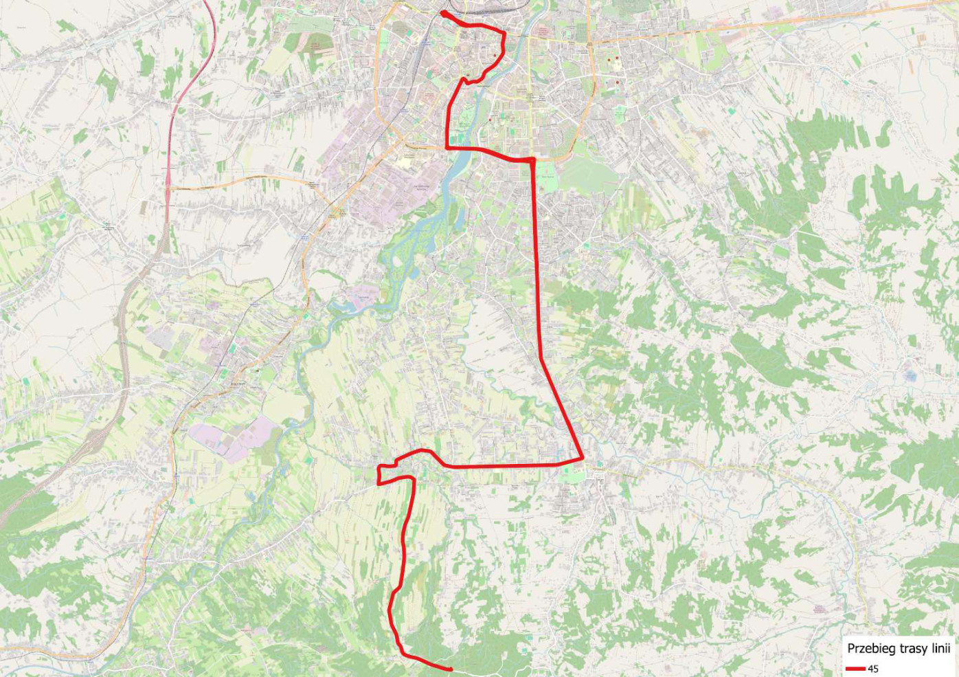 KOPERNIKA (wybrane kursy: Mickiewicza – Lasek – KIELNAROWA: KRÓLKA PĘTLA lub Mickiewicza – Chopina – HERMANOWA: Hermanowa pętla – HERMANOWA CZERWONKI PĘTLA)Linia 45 -> 47