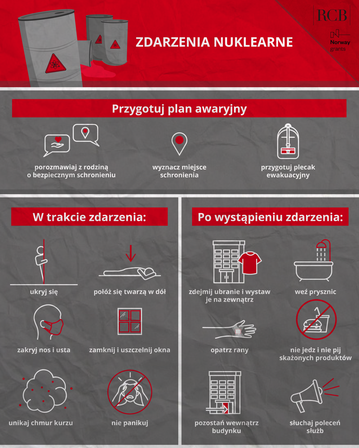 Poradnik oraz ikonografiki opracowane przez RCB w razie wystąpienia róznych zagrożeń i sytuacji kryzysowych