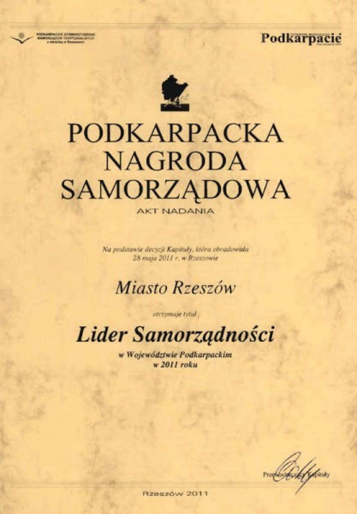 Na uroczystym spotkaniu z okazji Dnia Samorządu Terytorialnego, które odbyło się w Wojewódzkim Domu Kultury 28 maja 2011 r. Prezydent Rzeszowa Tadeusz Ferenc został nominowany do Podkarpackiej Nagrody Samorządowej za 2010 rok i otrzymał wyróżnienie dla najlepszego Prezydenta w województwie podkarpackim, natomiast Miasto Rzeszów otrzymało tytuł Lidera Samorządności w województwie podkarpackim w 2011 r.