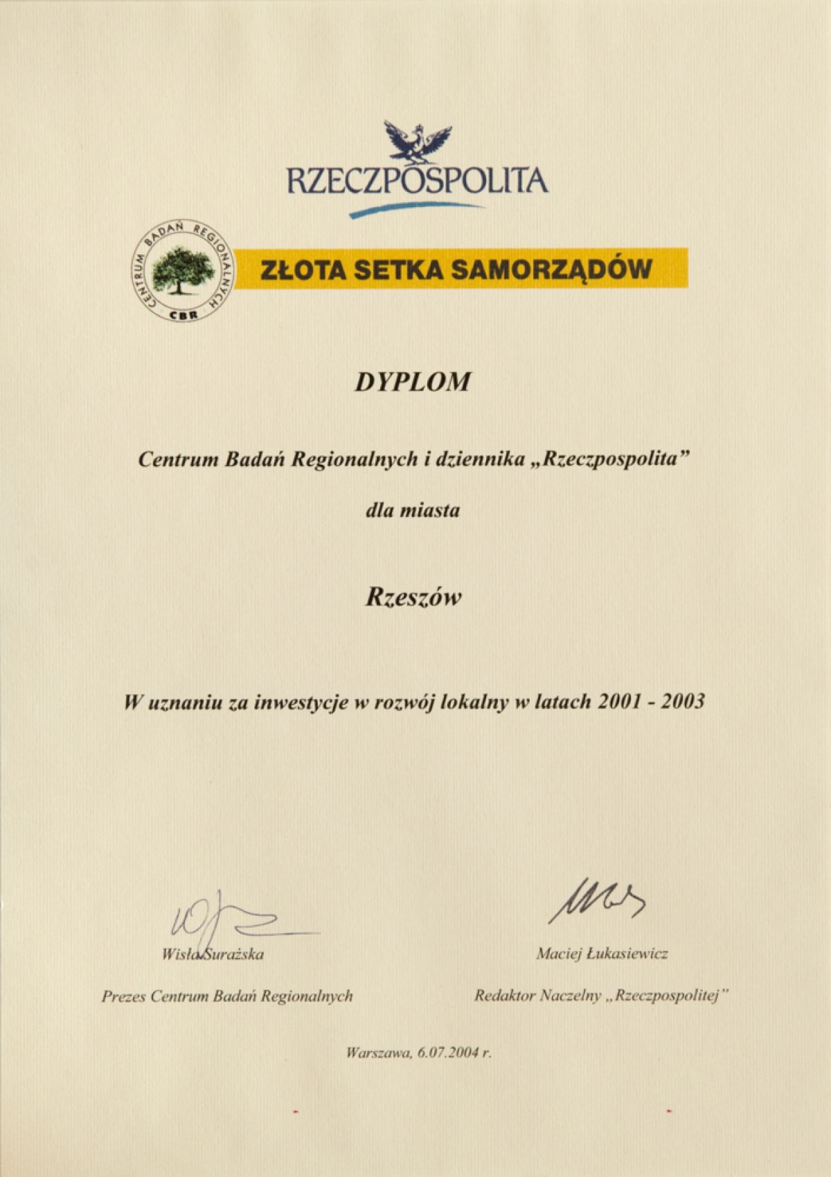 W ramach rankingu opracowano zestawienie "ZŁOTA DWUNASTKA MIAST", wśród których znalazł się Rzeszów, jako jedno z czterech miast wojewódzkich. To duży sukces Stolicy Podkarpacia, gdyż oceniano tak ważne aspekty jak: inwestycje w budżecie, inwestycje pozabudżetowe, aktywność społeczną oraz przyciąganie nowych mieszkańców.